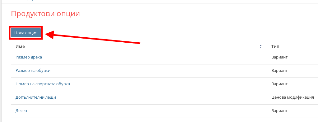 - Следващата стъпка е да натиснете върху бутона “Нова опция”.