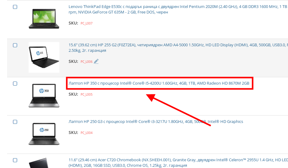 - Влезнете в продукта, в който искате да създадете опцията – можете да направите това като натиснете върху името му или върху иконката на синя писалка в десния край на реда му.