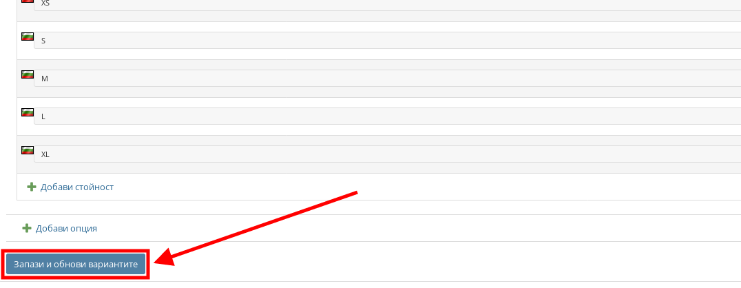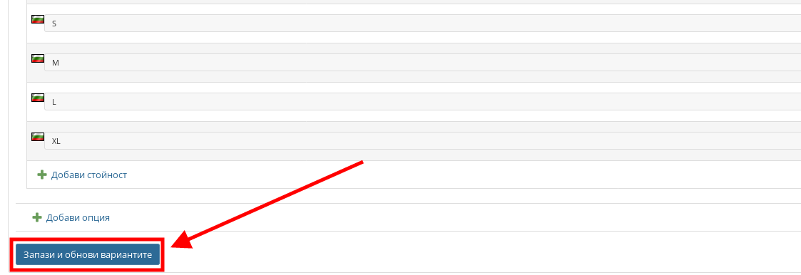 След това натиснете бутона “Запази и обнови Вариантите”.