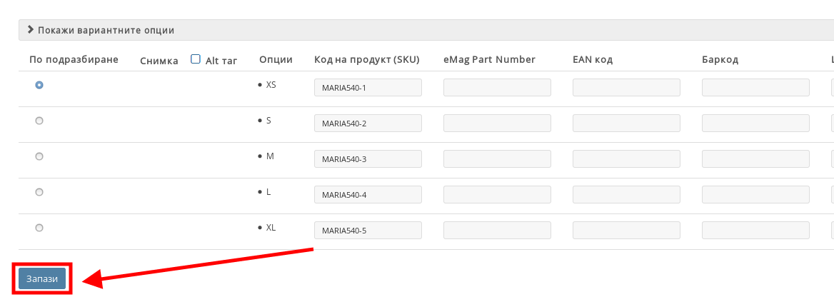 - Да сложите уникален SKU код на всеки продукт – системата автоматично попълва полетата за SKU кодове;