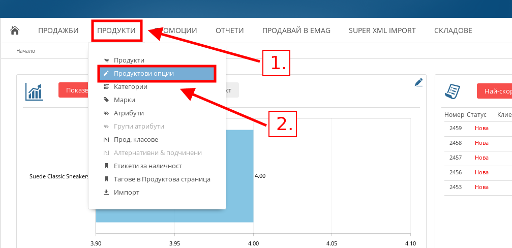 - В меню Продукти натиснете върху подменю “Продуктови опции”.