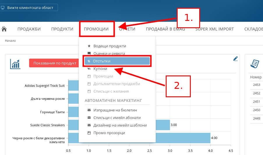 - Във Вашия админ панел посочете меню Промоции и натиснете върху подменю “Отстъпки”.