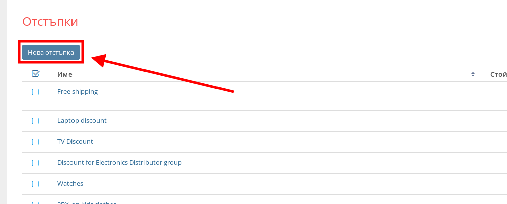 - След това натиснете върху бутона “Нова отстъпка”.