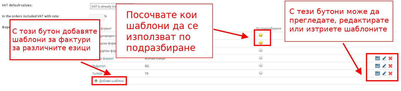 - С “Добави шаблон” можете да добавите нов шаблон за фактура;