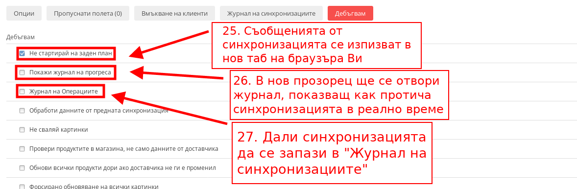 - Ако има поставена отметка върху “Обработи данните от предната синхронизация” Вие правите синхронизация с последния запазен XML фийд на доставчика, който имате в системата. Тази настройка може да се използва, ако системата Ви крашне по време на синхронизация.