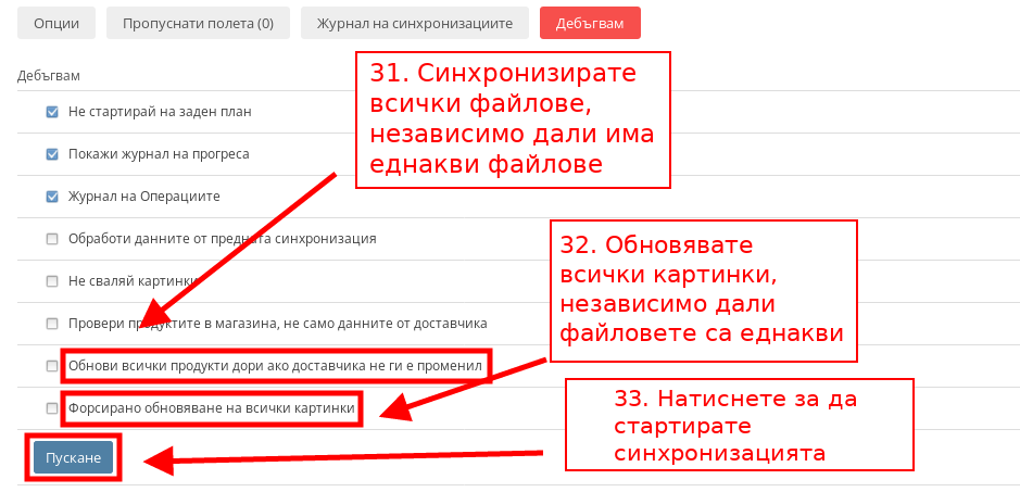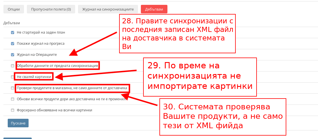 - С “Форсирано обновяване на всички картинки” презапизвате всички картинки от Вашия магазин, които съвпадат с тези от XML фийда, независимо дали няма разлика между тях.