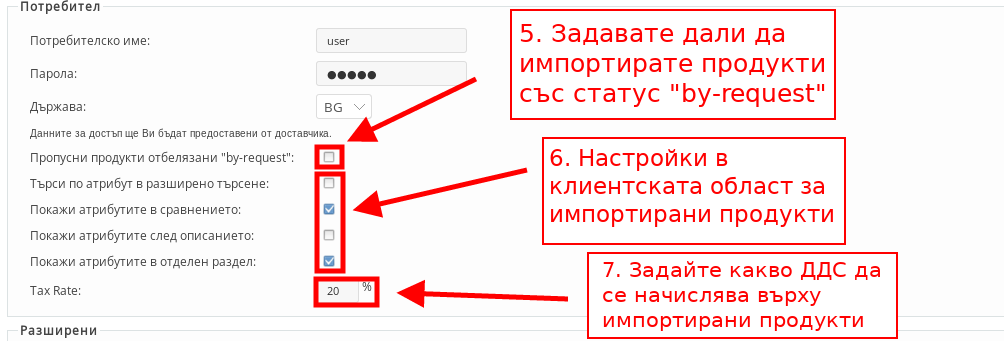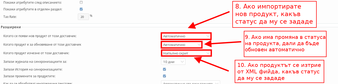 - С настройката “Tax Rate” задавате какво ДДС да се начислява върху продуктите, които импортирате.