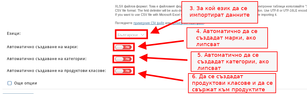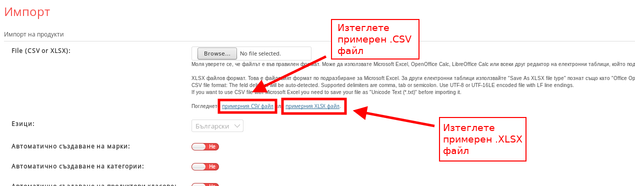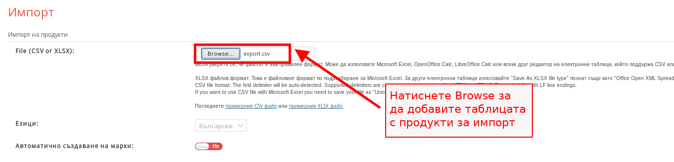 Импортиране на продукти чрез CSV или XLSX файл