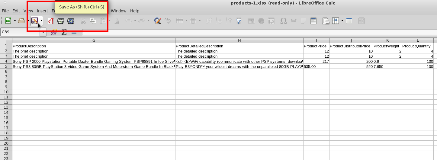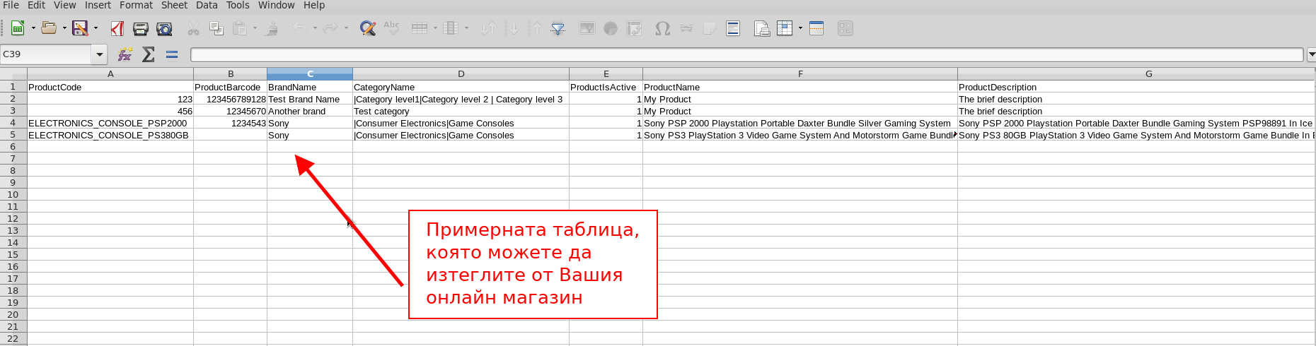 Можете да създадете таблица с продуктите, които искате да обновите с разширение .CSV (Comma Separated Value) или .XLSX (Excel Microsoft Office Open XML Format Spreadsheet).