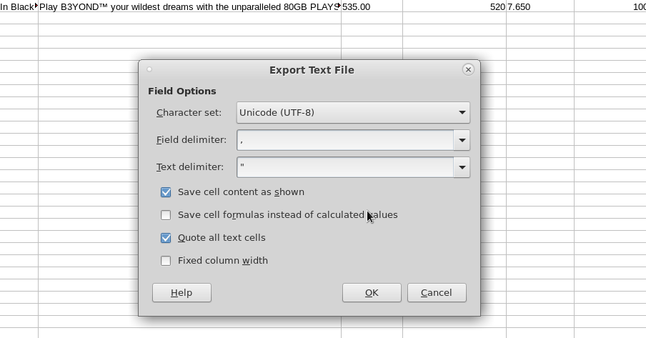 - Ако запазвате файла като .csv се осигурете, че настройките на експорта са идентични с тези на картинката.