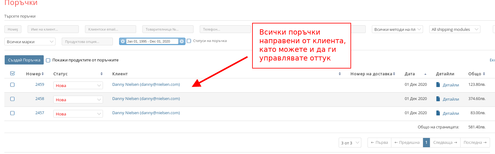 - Под реда “Поръчки” можете да видите информацията за всички поръчки, които е направил даден клиент.