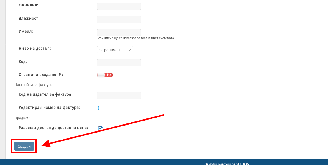 - С “Разреши достъп до доставна цена” давате достъп на администратора до доставната цена на продуктите.