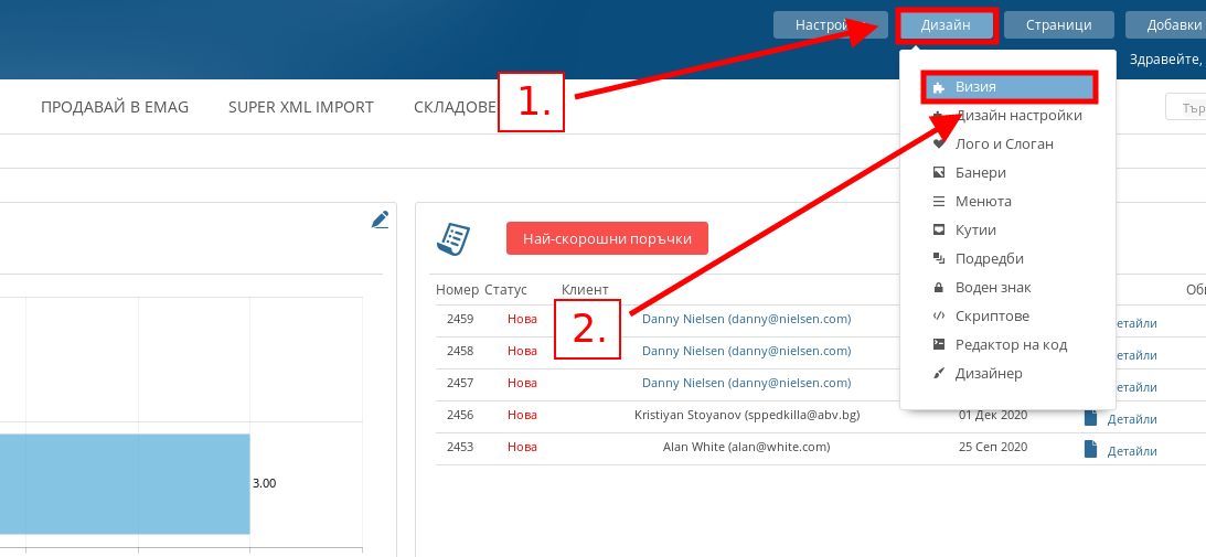 - За да отидете в страницата с дизайн теми, в административния си панел посочете Дизайн и натиснете върху меню “Визия”.