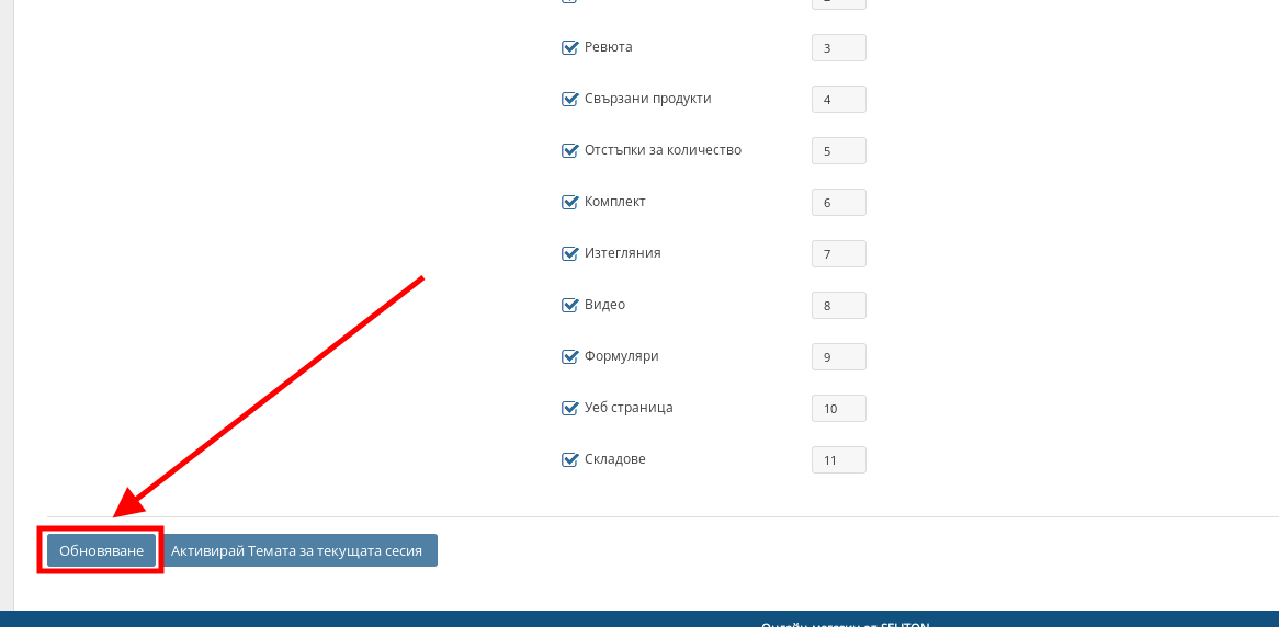 Когато сте готови с настройването на дизайн темата, натиснете бутона “Обновяване” в долната лява част на страницата.