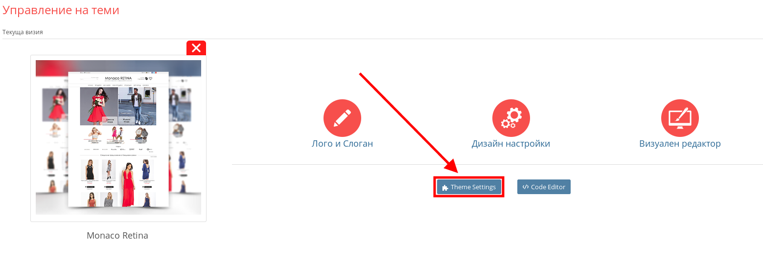 - За да влезнете в настройките на избраната визия, натиснете върху бутона “Theme settings”.