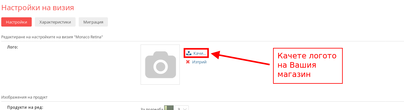- С настройката “Лого” качвате логото, което да използва Вашият магазин.