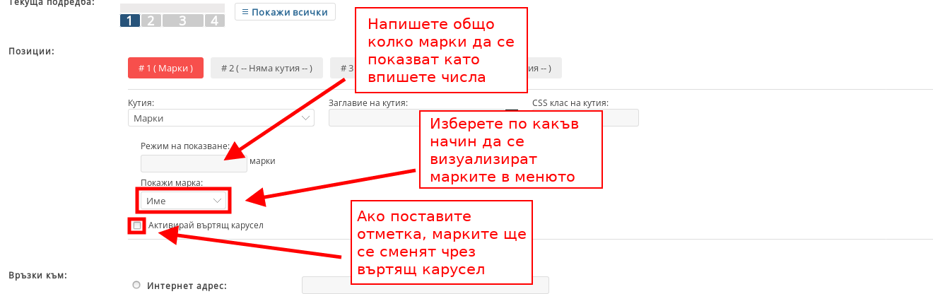 - В поле “Режим на показване” вписвате броя марки, който да се визуализират;