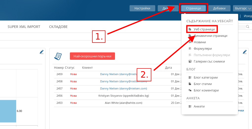 - За да отидете в менюто с Уеб страници, в административния си панел посочете Страници и натиснете върху меню “Уеб страници”.