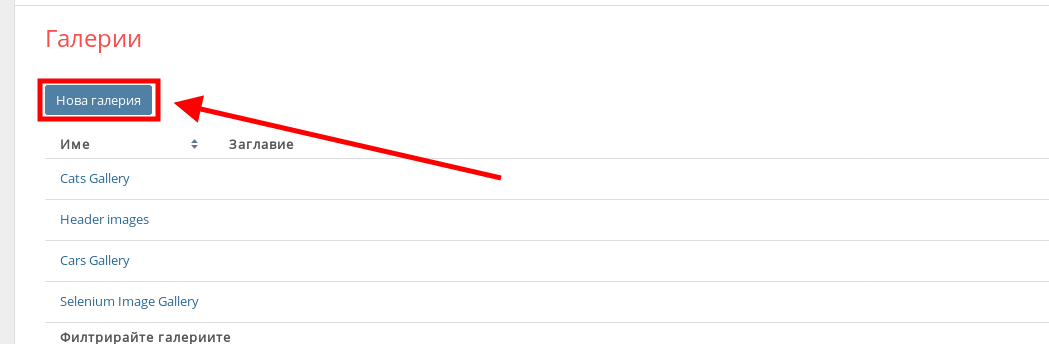 - Създайте нова галерия като натиснете бутона “Нова галерия”.