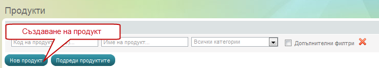 След натискането на бутона „Нов продукт“ системата ще Ви отвори страница изглеждаща по следният начин:
