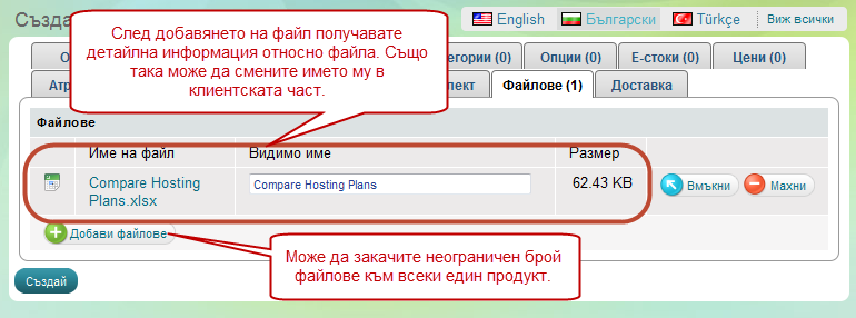 От тук може да добавите всякакви файлове към всеки един продукт.