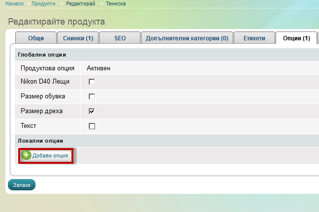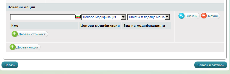 Ако желаем да създадем нова локална опция, която да се появи след току-що създадената, натискаме "Добави опция"