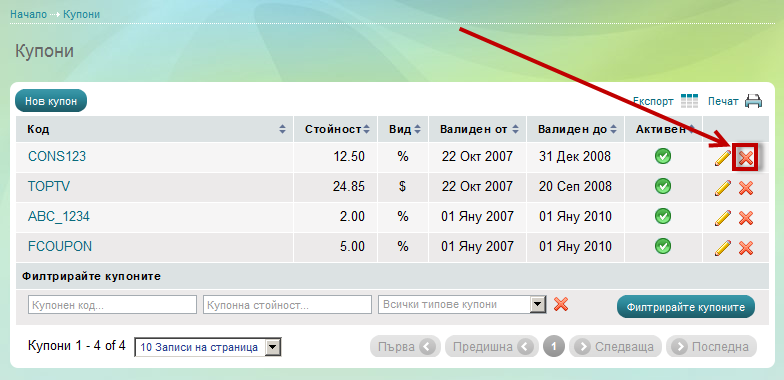 Изтриване на купони