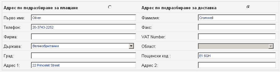 - Попълнете адрес за доставка на клиента.