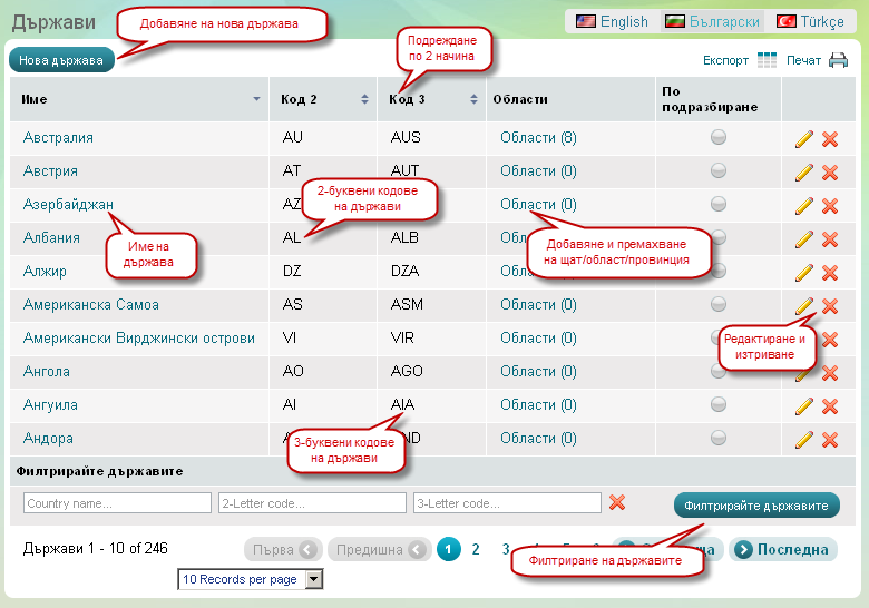 Страница 'Държави'
