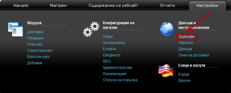 Отидете на Меню На стройки, под ' Данъци и местоположения ' и кликнете на връзка Държави. Кликнете н...