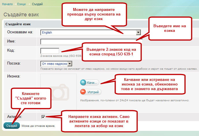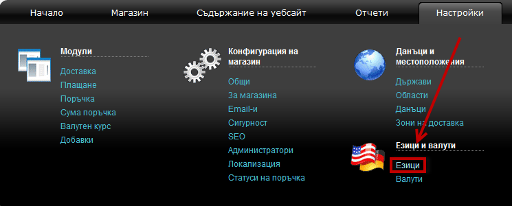 За да представите Вашия магазин на друг език, Вие първо трябва да изпълните базовите настройки на новия език.