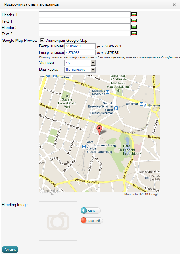 Полетата header и text се попълват по желание - в тях можете да въвеждате допълнителна информация и заглавия