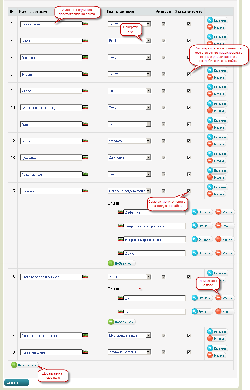 - Запишете Вашите промени. Формулярът незабавно се актуализира на уебсайта.