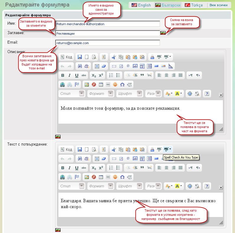 - Вие можете да редактирате полетата на формуляра.