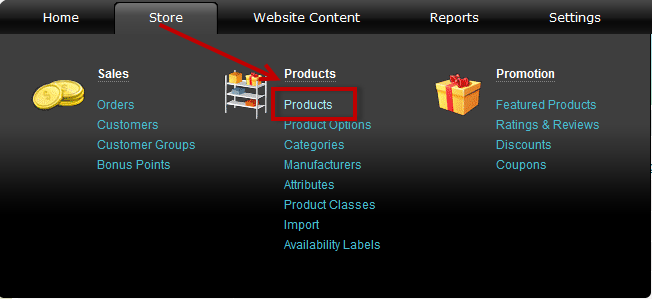 - From the admin panel, go to "Store", then "Products"