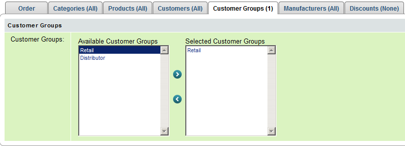 'Customer Groups' tab on 'Create Discount' page