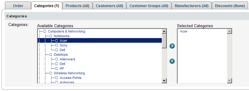 case you offer a discount limited to one or more product categories.