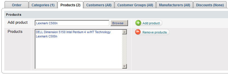 Grant a discount on particular products only. In this case you offer a discount limited to one or more products of choice. Discount is effective only for selected products and is visible to customers in category and product pages.