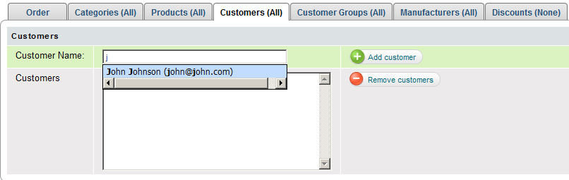 'Customers' tab on 'Create Discount' page