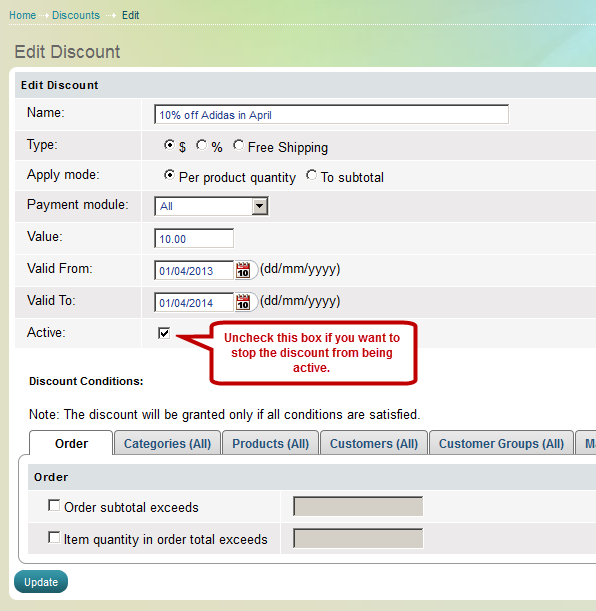 You could also open the "Edit discount page":