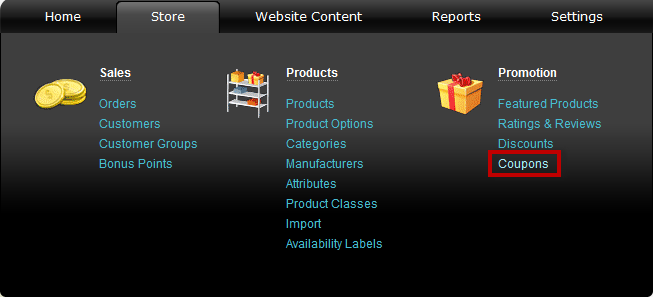- Go to Store >> Promotion >> Coupons