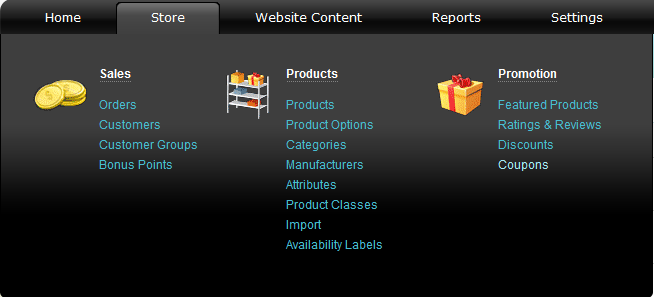 The coupon code is a string of letters and/or figures and is visible in the Admin Panel only. Store administrators create the coupon code, and give it out to customers through emails, newspapers, partner websites, brochures and so on. Customers come into the online store and add products into the cart. 'View Cart' page opens, there they can submit the code into a special field and the promised discount gets automatically calculated. The code may look like COUPON2008, or NewYear2008, or MothersDay2008, or may include only numbers like 123456789.