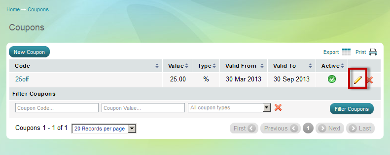 Remember that only active coupons can be redeemed by customers in the Store Front.