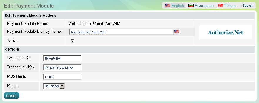 Summer Cart store owner is required to enter his or her API Login ID provided by Authorize.Net. API Login ID can be obtained from Authorize.Net Merchant Interface, in the 'Security' section under 'Settings' menu. |