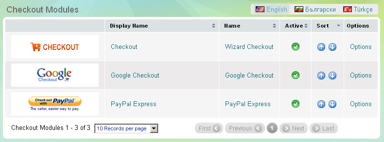Use 'Checkout Modules' page to activate one or more checkout processes and arrange sort order. You can activate them through the Options link next to each module.