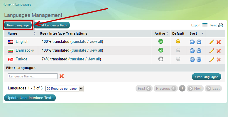 Click on 'New Language' button