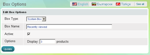 - Find 'Recently Viewed' and click on Options link at the end of the row. 'Box Options' page appears.