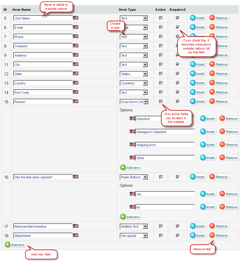 Website visitors can submit a long text in many lines. Usually it is used when further instructions or explanations are needed. |