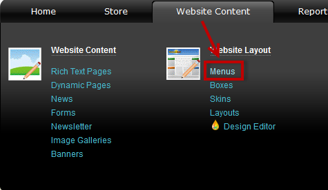 - Go to the Website Content menu, under 'Website Layout' click on Menus link. 'Menus' page appears.