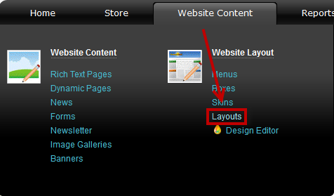 >> Go to the Website Content menu, under 'Website Layout' click Layouts link.